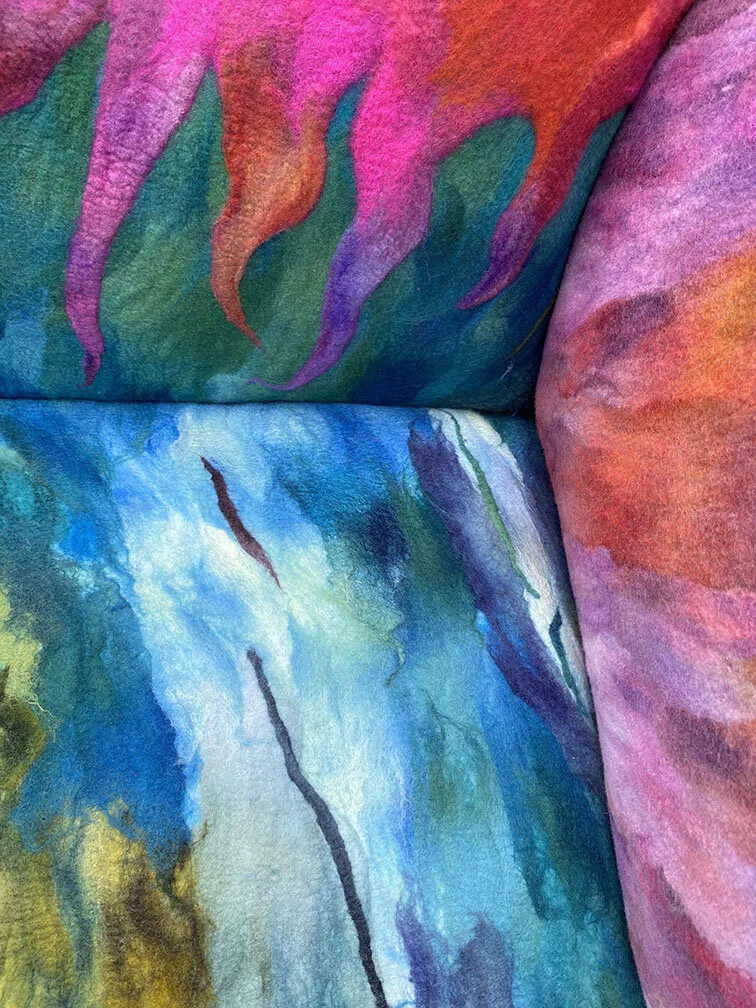 Wild and poetic, a singular work of art made from hand-wrought felted wool and silk fibers.
